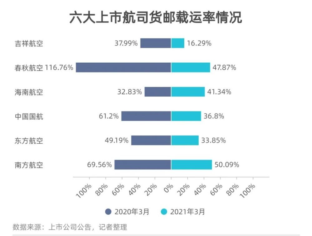 分航司來看,南方航空實現(xiàn)12.8萬噸的貨郵載運量,且貨郵載運率也最高,為50.09%,相當于投放的貨運運力中有一半得到了有效利用。